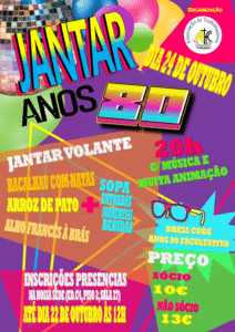 O Jantar “Anos 80” irá ter lugar no próximo dia 24 de outubro de 2025 às 20:00 no edifício C7.