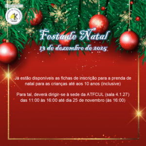 A Festa de Natal da ATFCUL realizar-se-á dia 13 de dezembro, no C7.
