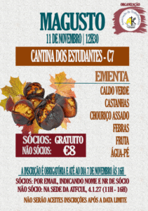 O Magusto ATFCUL 2025 será no dia 11 de novembro na cantina C7 (estudantes)